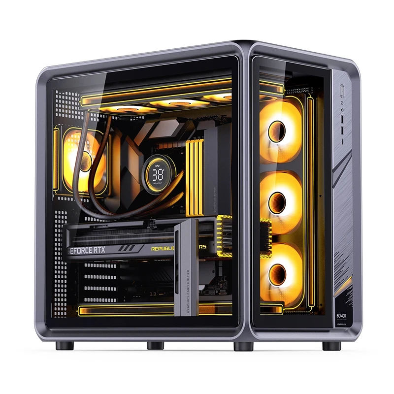 The ASUS A31 TG Black is an ATX mid-tower case designed for PC builders who want a clean, minimalist, and panoramic aesthetic for their gaming or professional builds. It features dual-sided tempered glass panels on the front and side for an unobstructed view of the internal components.