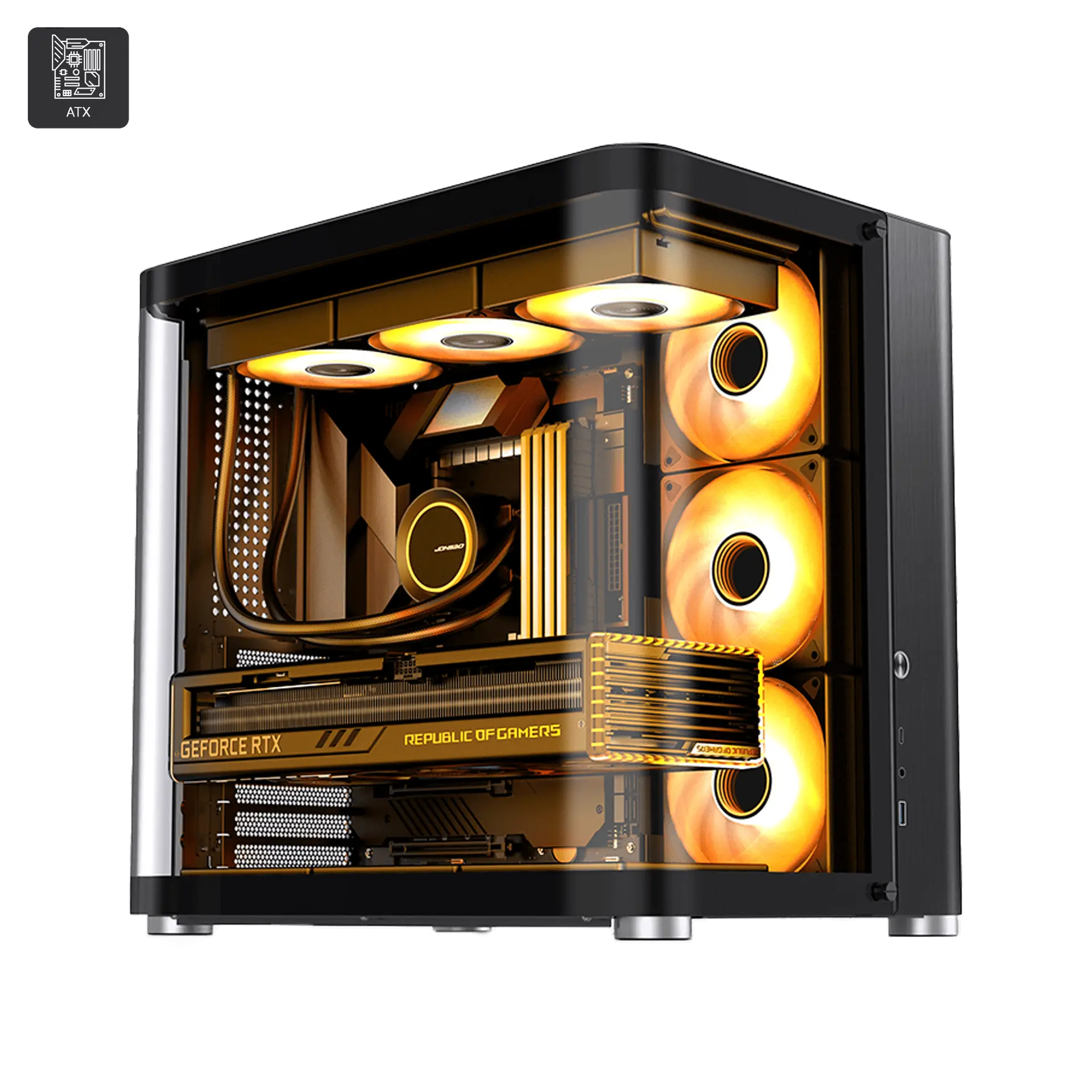 5 Aluminum alloy+1mm steel panel-Motherboard:ITX / M-ATX / ATX-Cooling: Top:360mm x 1 | 280mm x 1(optional) | Bottom: