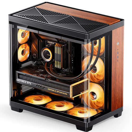 The Jonsbo TK-4 is an ATX mid-tower PC case known for its dual-chamber design and panoramic, curved tempered glass panels, which offer a seamless view of internal components. It is available in various finishes, including black, white, and a wood accent version.