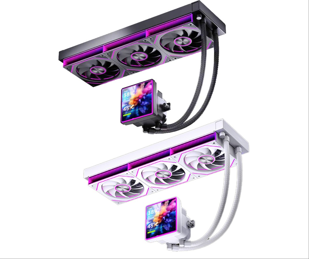 TUF Gaming LC III 360 ARGB LCD all-in-one liquid CPU cooler with pre-installed & integrated triple fans designed for high airflow and static pressure; 2.8" LCD for hardware monitoring, custom GIFs and MP4 video clips